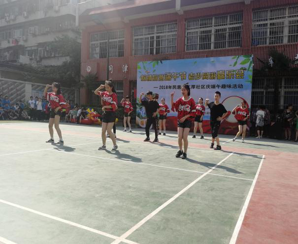 活动于当日下午3点正式开始,仁厚社区张书记发表了精彩的致辞,率先为大家送去了祝福。紧接着,紧张刺激的趣味运动会就要开始了!首先,在工作人员的指导下,参与活动的人员被分成了4个小队,每队10人,队伍里既有在校学生,又有社区居民。此次趣味运动会总共有6个比赛项目,每个项目都非常考验队伍之间的团结协助能力。在主持人说明规则后,比赛正式开始,各个队伍都全力地投入到比赛中去,整个过程十分激烈,但大家都笑得十分开心,其中的抛粽子、旱地赛龙舟比赛更是逗得在场所有观众哈哈大笑。在比赛中场休息的间隙,仁厚社区荷塘月色艺术团、青春舞蹈队,以及武汉市第七十五中同学带来了精彩的表演,他们用自己的方式庆祝这一传统节日。