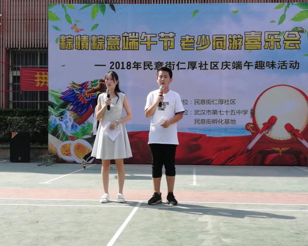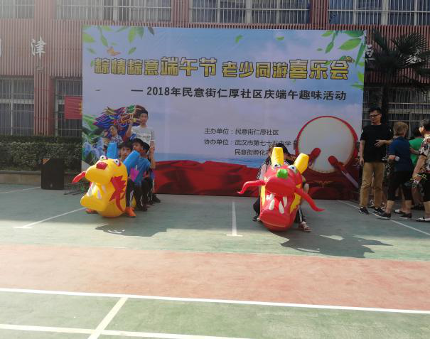 每年农历五月初五是中国的传统节日——端午节,关于端午节,各地略有不同的庆祝方式一同形成了独特的端午文化,各代文人墨客也不惜笔墨借用诗词歌赋抒发心中的情感,文字与庆祝活动都是对这一传统文化最好的传承。为发扬中华文明传统文化,弘扬端午文化,传承爱国主义精神,老少同乐欢聚一堂,增强社区凝聚力,丰富居民精神文化生活,仁厚社区联合武汉市第七十五中学、武汉市逸飞社会工作服务中心于2018年6月15日举办以“粽情粽意端午节,老少同游喜乐会”为主题的庆端午趣味运动会。参与本次活动的有仁厚社区居民、社区社会组织、社区党员、失独家庭、外来务工人员工作人员、志愿者、社区居民、七十五中师生等。