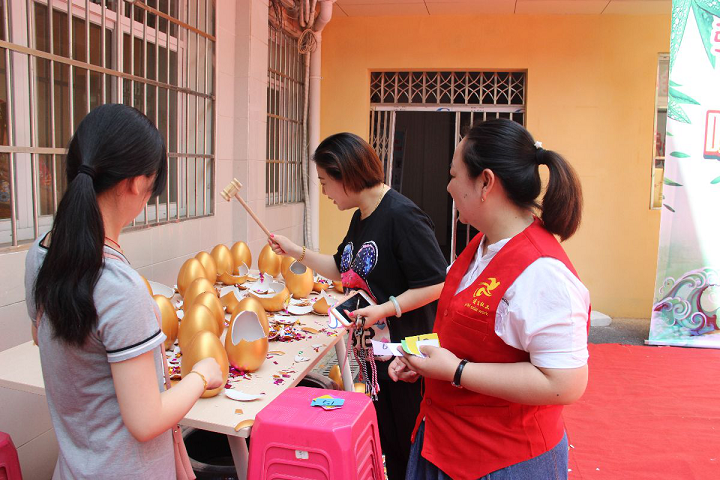 民意街红叶时装艺术团、久雄葫芦丝表演艺术团、绚丽人生舞蹈队、阳光家园,用模特步、葫芦丝和舞蹈表演引人入胜,让人移不开眼,成功获得了观众们的青睐。稚美幼儿园的小朋友们也为居民朋友们带来了一场精彩的表演。每一个游戏环节,优胜者都可以通过砸金蛋获取奖品,大家迫不及待、跃跃欲试,场面十分热闹。