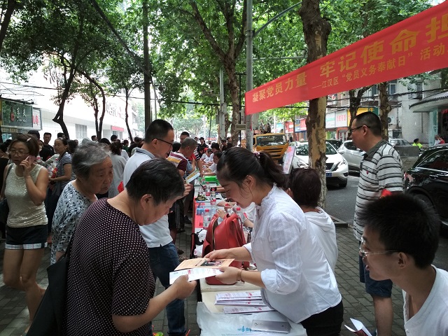 在中心会场,九辰堂中医馆、都市女子医院、北湖卫生服务中心提供健康咨询和义诊;市环境监测中心、中国银行、市环保局信息中心、北湖小学、汇得行、北湖街司法所提供各类咨询服务;党员志愿者提供修鞋、理发、电器维修等便民服务。累计提供咨询服务150余人次,发放宣传单350份,发放清凉油100余份,测量血压42人次,中医问诊19人,小修理服务24项。