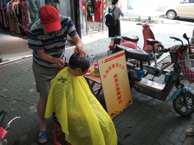 湖北银丰置业有限公司在职党员张锡汉同志也早早来到中心会场,为高龄老人提供免费理发服务。活动期间他共为13名老人理了发,年纪最大的老人超过80岁。他精湛的手艺和热情周到的服务得到了老人们的一致称赞。这是他第3次参加“党员义务奉献日”活动。