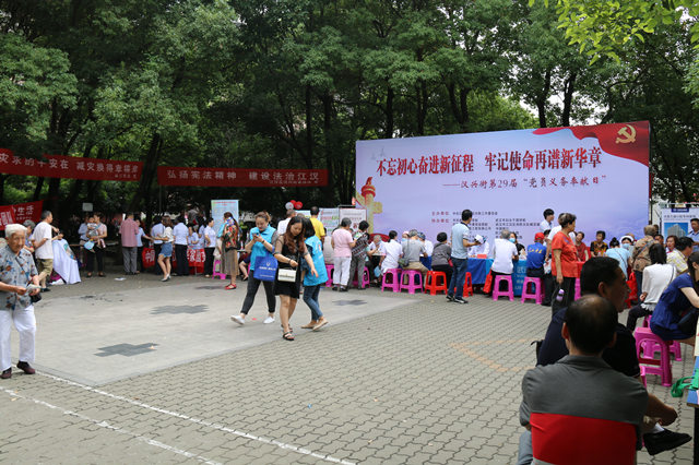 为庆祝建党97周年,把习近平总书记视察湖北武汉重要讲话精神落到实处,强化“红色引领”、激活“红色细胞”,进一步提升居民的幸福感和获得感。按照区委组织部统一部署要求,汉兴街工委于6月23日上午在常二社区文体广场组织开展“不忘初心奋进新征程 牢记使命再谱新华章”党员义务奉献日活动。
