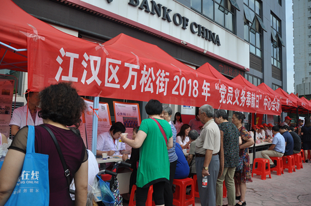 为庆祝中国共产党建党97周年,大力实施整区推进“红色引擎工程”,全面激发党员活力,为构筑富裕活力美丽幸福新江汉凝心聚力,根据区委统一部署,万松街工委于6月23日上午在电业社区设立中心会场,开展“党员义务奉献日”活动。区委组织部、区直机关工委、区经信局、区科技局等单位(部门)、辖区爱心单位、挂点领导、机关和社区党员干部共计180余人参加活动,本次活动共吸引300余名居民群众参加。