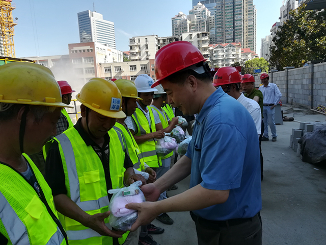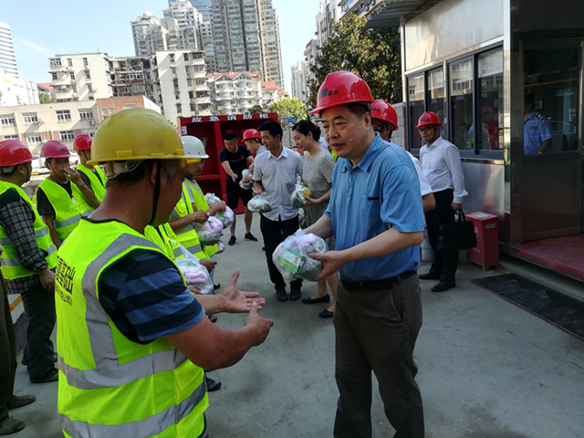 7月18日上午,区政协主席严国运一行冒着酷暑到中海地产万松九里项目部,现场慰问坚守岗位、辛勤劳动的一线职工,为他们送去毛巾、绿豆、白糖、风油精等防暑降温物资。街工委书记段国华、办事处主任金捷陪同慰问。
