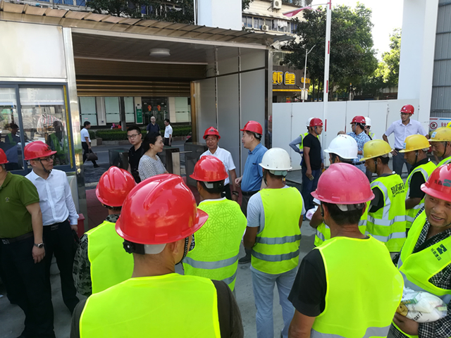 严主席同项目负责人进行深入交谈,详细了解项目工程情况、施工进度、施工安全等问题,对施工工人所付出的辛劳表示感谢,并强调要提高安全生产意识,在确保施工质量的同时,科学合理安排工作时间,注意劳逸结合、防暑降温。