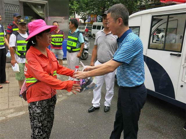 耿主任一行先后来到台北路延长线、三眼桥海虹景、唐蔡路、马场二路、马场路、菱角湖5个城管执法岗亭,实地察看了城管队员的工作环境,与他们亲切交流,并将防暑降温用品亲自送到他们的手中,对他们在烈日下仍坚守岗位、任劳任怨、勤奋敬业的工作精神,表示了由衷的敬佩,同时他再三叮嘱:高温天气要注意身体,做好自我调节,错开高温时段,根据实际情况合理作业,调整劳动强度,防止高温中暑。