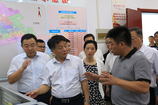 7月25日下午,全市反邪教进网格工作推进现场观摩会在江汉区汉兴街召开,市委常委、政法委书记曹裕江,市委政法委副书记、防范办主任殷玉梅在区委书记张俊勇、区政法委书记陈红山等领导的陪同下莅临汉兴街、常二社区调研“反邪教工作进网格”试点情况。