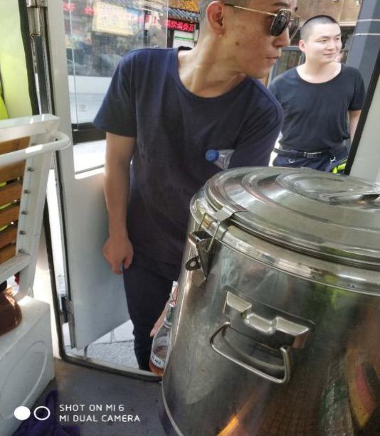 2018年7月22日,中午12:27左右,保罗法狄商户送水到岗亭慰问中队队员。
