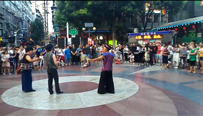 为积极推介凉城利川,省第九届少数民族传统体育运动会暨第二届龙船调艺术节执委会于2018年8月16日在江汉路步行街新世界大厦大屏幕下的中心广场举办开展《龙船调》歌舞推广快闪活动。