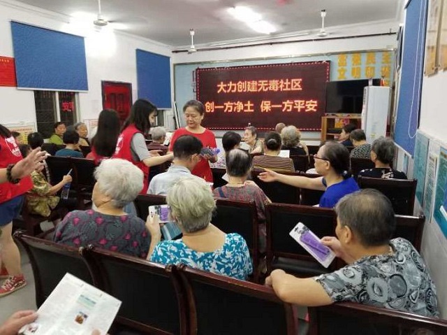 为进一步加大禁毒宣传力度,增加辖区群众对毒品的认知度,提高辖区居民群众识毒、防毒、拒毒的意识和能力,8月28日晚,北湖街中心戒毒社区在德望社区纳凉室举办“大力创建无毒社区,创一方净土保一方平安”主题宣传活动。