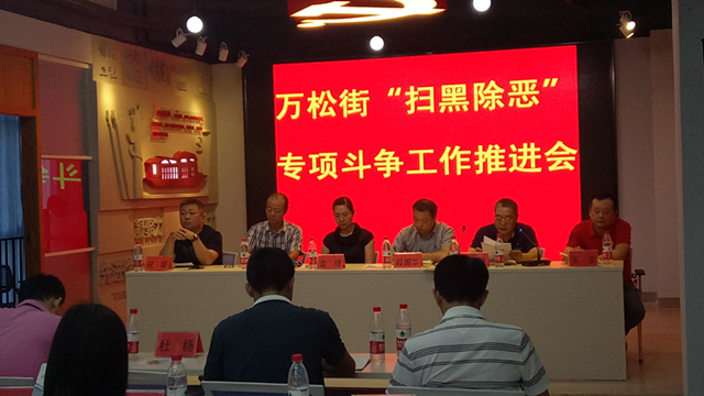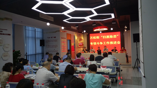 8月24日下午,万松街组织召开扫黑除恶专项斗争工作推进会,街党政领导、机关全体干部,辖区三个派出所所长,社区书记主任、专职副书记、综治副主任80余人参加会议。