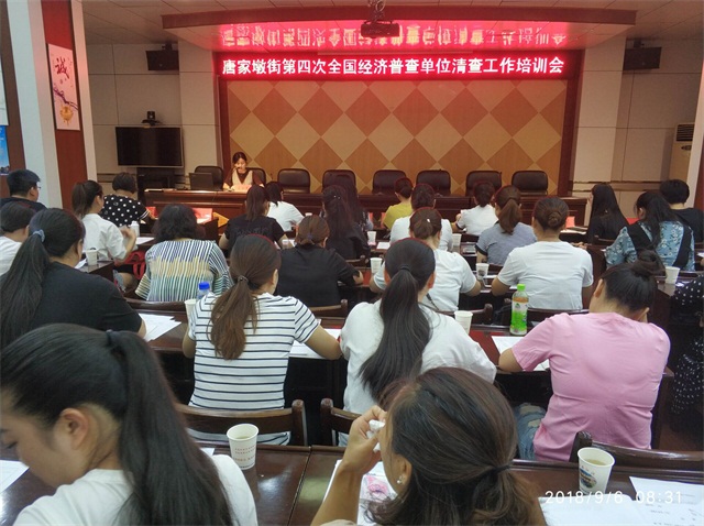 9月6日唐家墩街在三楼大会议室组织了由街经普办全体工作人员及各社区指导员、普查员共计60余人参加的第四次全国经济普查单位清查工作培训会,会议由街经普办主任张敏主持。