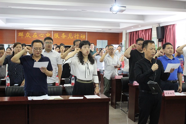 与会人员在副主任苏祥初的带领下进行“七军会”宣誓。在严肃庄重的气氛中,所有人右手握拳,面向主席台,逐句宣读,铮铮誓言振聋发聩。在场的每个人深受感染,表示不负重托,担当作为,为打造精致江汉奋力拼搏!