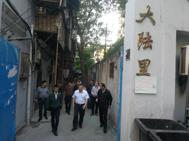 2018年10月11日上午,江汉区委书记张俊勇到民意街调研指导红色遗迹遗址保护工作。在民意街工委书记吕良、街办事处主任余建清、街办事处副主任金德才以及社区书记等同志的陪同下,实地查看了“董必武故居”(舞台社区安仁里)和“新华日报旧址”(多闻社区大陆里)两处民意街辖的红色遗迹遗址。