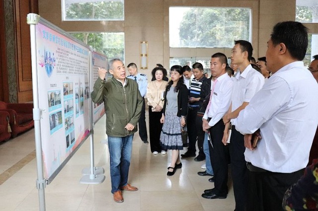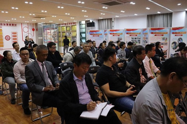 实地参观之后,所有人在横堤社区大会堂召开会议。会上,凤凰城小区华盈物业负责人刘涛做了经验交流发言。