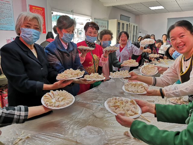 活动中,社区志愿者和老年居民代表们分工协作,你和面,我拌馅,忙的热火朝天。一张张微笑的面容,一颗颗诚挚的心灵,现场气氛温馨,其乐融融。活动结束后,社区志愿者将一个个带着温暖的饺子装盘后,送到空巢老人家里,老人们开心极了,沧桑的脸上露出了久违的笑容。