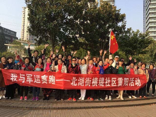 横堤社区:10月17日,迎来了一年一度的重阳佳节,为丰富群众的文化生活,增强老年朋友们的体质,增进他们的身心健康,横堤社区组织辖区近70名老年朋友们在美丽的西北湖畔开展“我与军运赛跑”健步走活动。