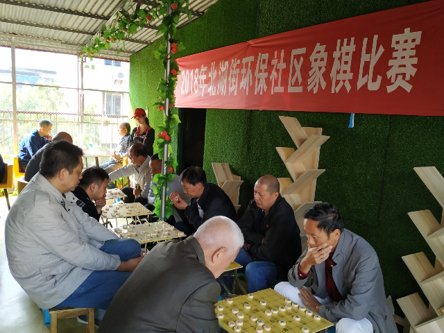 环保社区:在九九重阳节来临之际,为弘扬中华民族尊老敬老的传统美德,丰富老年人的业余生活,10月17日,北湖街环保社区于举办了“以棋会友、欢度重阳”象棋比赛活动,共吸引了40位老年象棋爱好者参加。