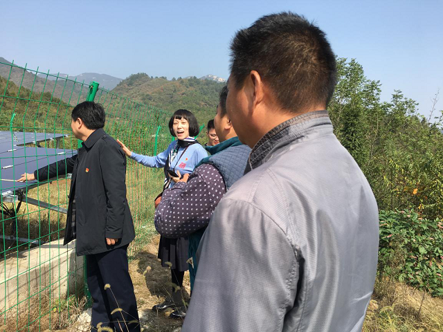首先,街办事处徐主任带队与村委会陈书记一起,实地察看了扶贫项目光伏发电,了解光伏发电运行效益情况,提出了项目收益要完成年收入10万元的目标。