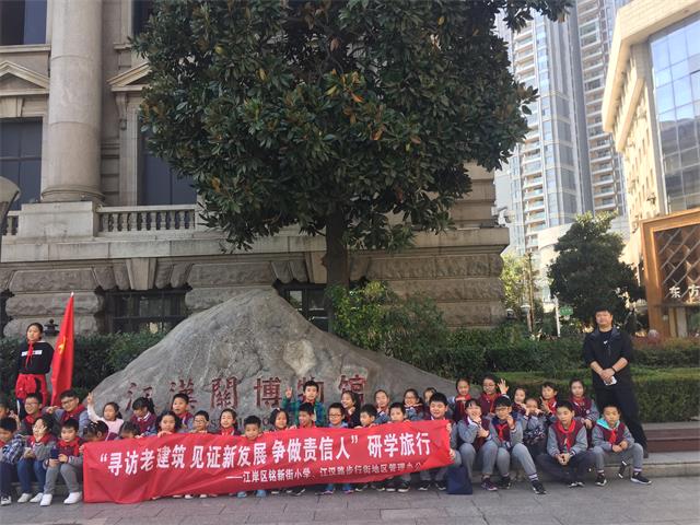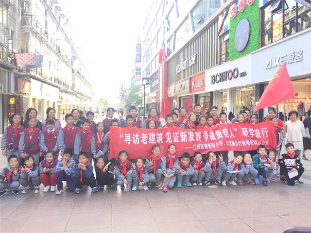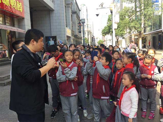 2018年10月26日秋高气爽的上午,铭新街小学的50余名师生来到江汉路步行街参加“寻访老建筑 见证新发展 争做责信人”研学旅行,江汉路步行街地区管理办公室服务科科长张凯担任此次研学旅行的讲解人,义务为大家讲解介绍这条历史底蕴深厚的商街。