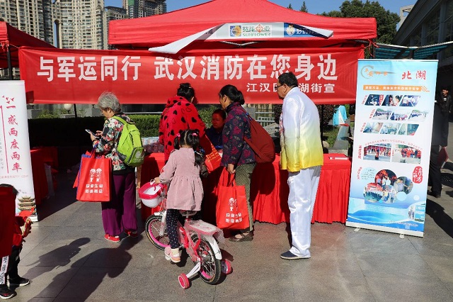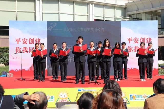 北湖街工作人员、志愿者宣读《武汉军运会东道主文明公约》。