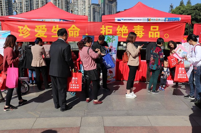 在"珍爱生命,拒绝毒品”禁毒宣讲活动展台,北湖街中心戒毒社区社工针对性进行讲解,对老年人采用通俗易懂的方式,手把手指导扫码关注“江汉禁毒”;对好奇心特别强、辨别是非能力弱的青少年,告知他们不法分子的诱人手段,普及吸毒的危害性。 社工发放各类禁毒宣传资料300余份,发放禁毒小礼品500余个,接待咨询群众近300人次。居民们深受感触,纷纷表示:“这个宣传好,我回去后要给家里小辈和邻居宣传宣传,让他们引以为戒,远离毒品。”