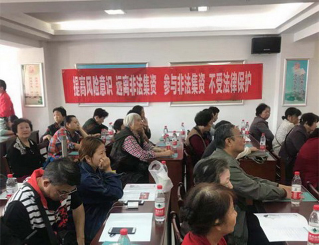 为了提高辖区居民防范非法集资意识,自觉抵制非法集资,共同维护辖区和谐稳定,10月26日上午,区处非办特邀请保险公司讲师在民意街办事处会议室为辖区居民开展“武汉处非公众宣教工程防范非法集资”公益讲座,现场共邀请辖区居民代表约100余人参加。讲座主要围绕非法集资的定义、主要表现形式和特征以及如何防范非法集资等三个方面进行了相关知识宣讲,并结合实际案例全面揭露了非法集资诈骗带来的严重后果。同时现场解答居民关于识别、防范和应对非法集资方面的困惑和疑问,累计发放各类非法集资宣传资料100余份,取得了良好宣传效果。