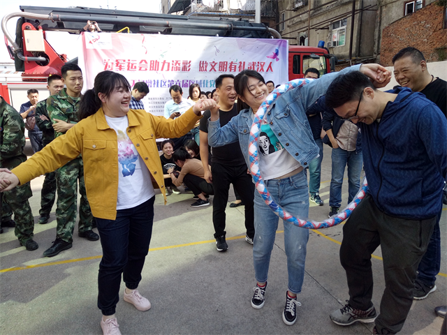 10月31日上午,天门墩社区党委和辖区共建单位在天门墩消防中队的操场上举办“为军运会助力添彩,做文明有礼武汉人”暨天门墩社区第六届社区区域化党建联谊趣味运动会。