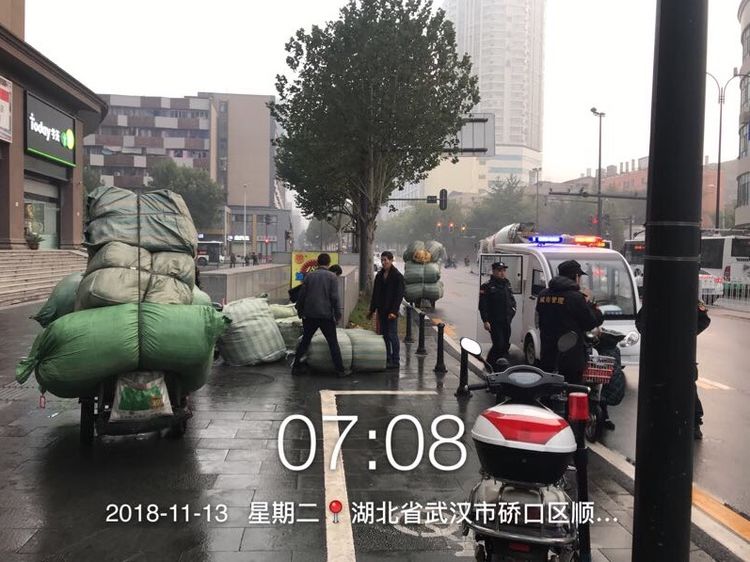 经过这段时间的整治,商家自觉遵守相关法规,每天早上7:00以前自行清除占道包裹。