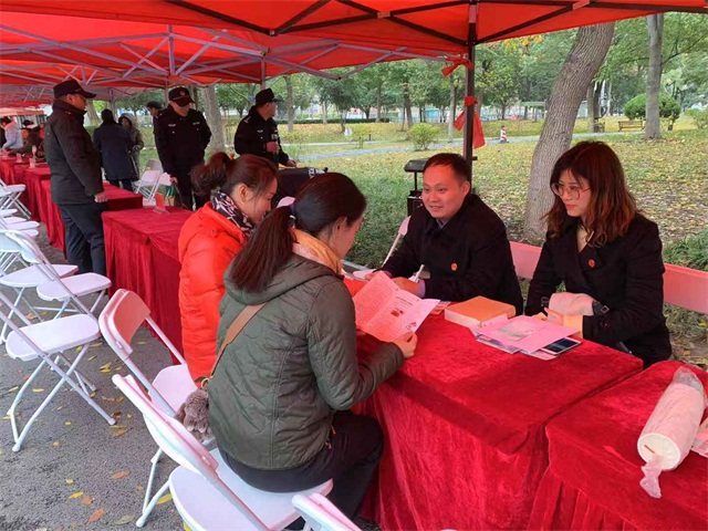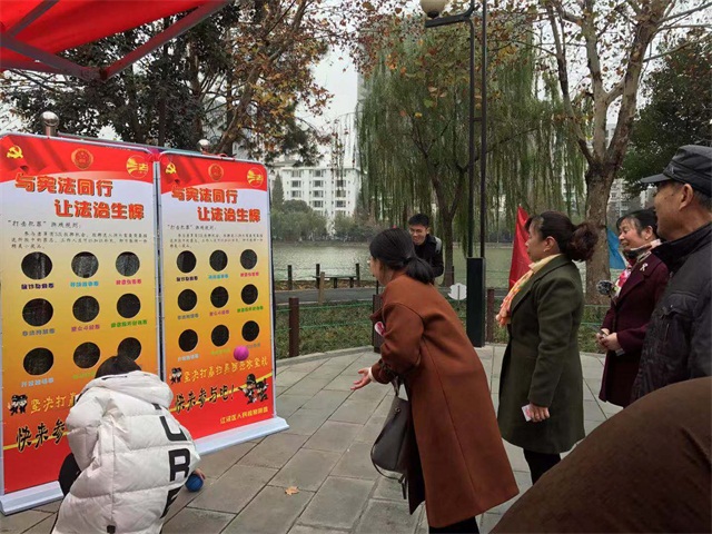 4日上午,由区委宣传部、区司法局、区普法办、区园林局主办的“与宪法同行 让法治生辉——‘健’行法治·江汉普法游园会”宪法宣传活动在我街菱角湖公园开展。来自全区50余家职能部门充分利用宣传条幅、宣传图板,发放宣传资料、设立咨询台等形式在现场为辖区居民开展了法律咨询、法律服务等法治宣传活动。按上级部署,今年我街在12月4日当天不设宣传分会场,我街组织社区群干、居民群众120余人前往参加全区在菱角湖公园设立的中心宣传点宣传活动。