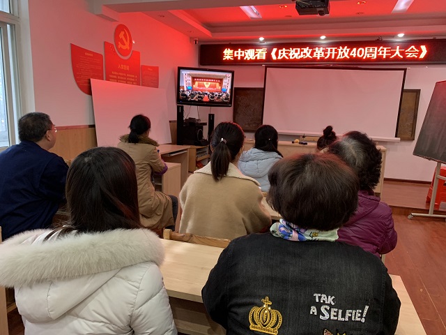 12月18日上午,民意街组织机关全体党员干部以及辖区七个社区集中观看《庆祝改革开放40周年大会》,学习领会习近平总书记重要讲话精神。