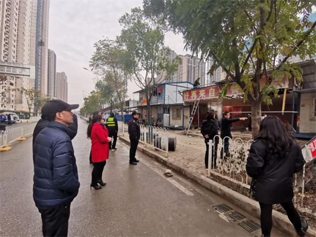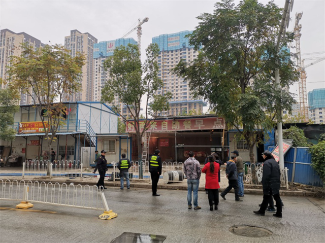 拆违地点紧邻街道,站东社区派专人对道路周边进行交通管制,拉起警戒线。在确保车辆能有序通过的同时,最大程度的减少对拆违点周边行人安全隐患。
