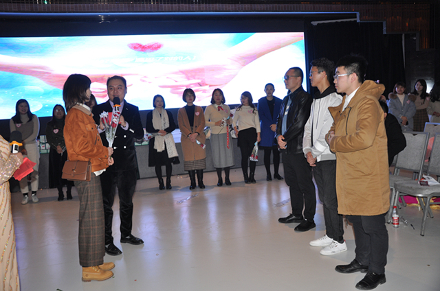 经过近1个多小时的游戏互动,终于迎来了激动人心的真情告白环节。男嘉宾将贴上自己的缘分号码牌的玫瑰花一起送给自己心仪的女嘉宾,并依次进行告白,最终40位男女嘉宾当场成功牵手,现场成为一片爱的海洋。