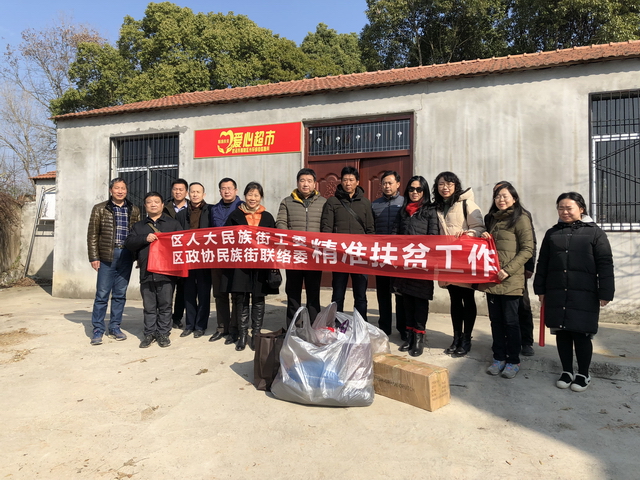 12月18日上午,民族街组织9位区人大代表、区政协委员考察调研黄陂区长轩岭镇赵畈村精准扶贫情况。参加考察调研活动的人员首先在赵畈村党员群众服务中心会议室召开了精准扶贫工作调研座谈会,听取了解民族街对口帮扶的黄陂区长轩岭镇赵畈村扶贫脱贫情况。随后代表和委员们又分组走访慰问赵畈村困难家庭,发放慰问金。在拉家常中详细了解帮扶对象的近期生活情况及经济收入情况,鼓励他们树立信心,克服困难,保重身体,将日子越过越好。最后,大家还实地考察了村里的养殖基地和光伏发电站等项目,切实感受扶贫工作的开展给村里带来的变化。