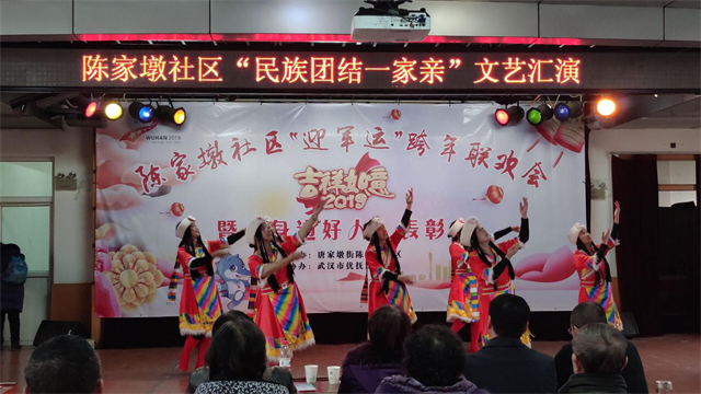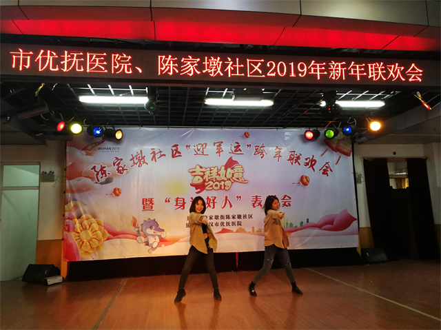 唐家墩街陈家墩社区与市优抚医院共同举办以民乐合奏、歌舞跨年文艺联欢活动。街办事处主任滕宏、工委副书记郭赟、办事处副主任周玲与辖区单位领导、两长四员、志愿者、居民代表等200余人共聚一堂开展文化联欢。