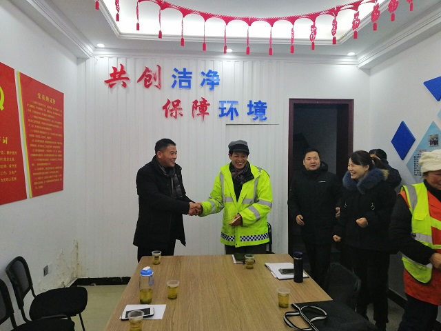 新年之际,为了表达对环卫工人的关怀和祝福,1月18日上午,民意街舞台社区到环卫所开展慰问活动,为舞台辖区三名环卫工人送上慰问金,感谢他们在冬日里的辛勤付出。环卫工人们表示今后将一如既往地以饱满的热情做好环卫工作,努力做到“为环境,无止境”,以最佳的环境卫生迎接军运。