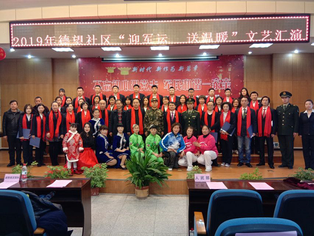 为了迎接2019年武汉市军运会的到来,展示军民和谐一家亲,1月25日下午,北湖街德望社区在天门墩中学礼堂开展“不忘初心跟党走,军民和谐一家亲”文艺汇演活动。区人武部、武警武汉支队及街道领导受邀到达现场,辖区共建单位及200余位居民齐聚一堂。