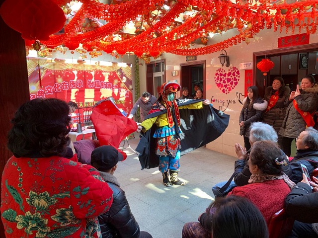 天后社区邀请至爱艺术团为社区居民带来了川剧《变脸》节目,并现场义写春联送福字,同时大家分工合作包饺子,共同传承优秀传统文化;