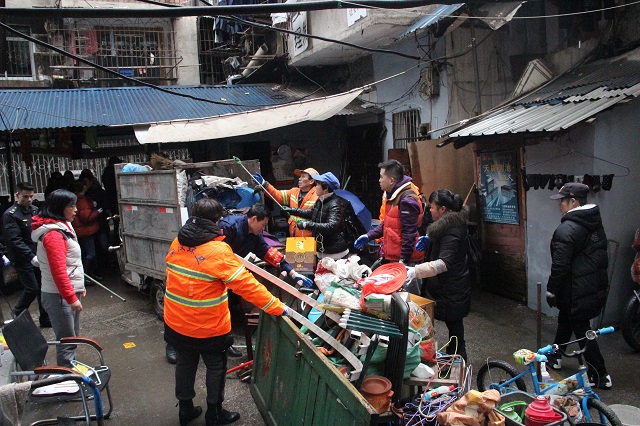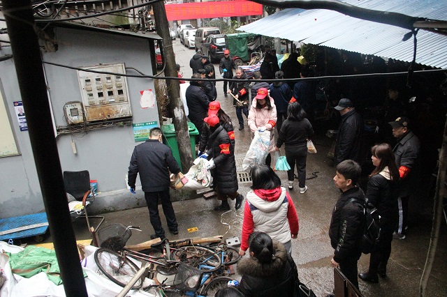 明确分工抓重点。所有人员分成四组,均拿上铲子、夹子、扫把等工具,分别对藕池巷小区车棚难点片区、26号餐饮摊位难点片区、9号难点片区以及26个单元楼道进行全面清理清扫,重点解决乱堆乱放、出店经营、乱搭乱盖、占用共用通道等问题。
