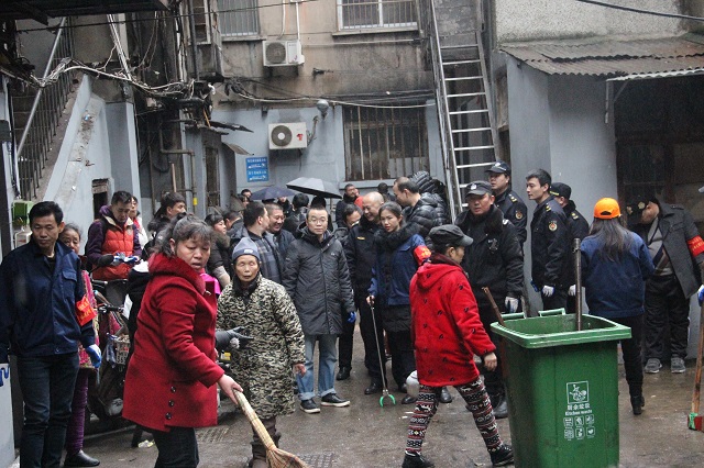 干部群众齐上阵。由街工委书记余建清书记领队街党政领导、机关科室负责人、城管、环卫所、社区工作人员、社区志愿者以及辖区对口文明单位(友谊路中学、民意卫生院)等共同参与到环境卫生整治行动中,累计110余人。