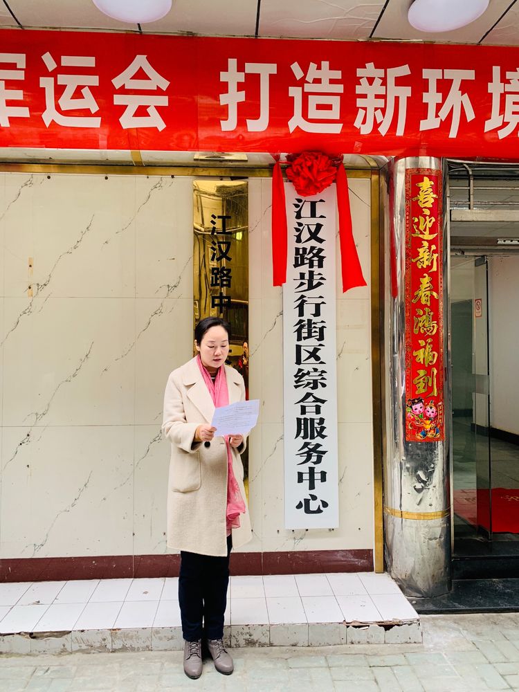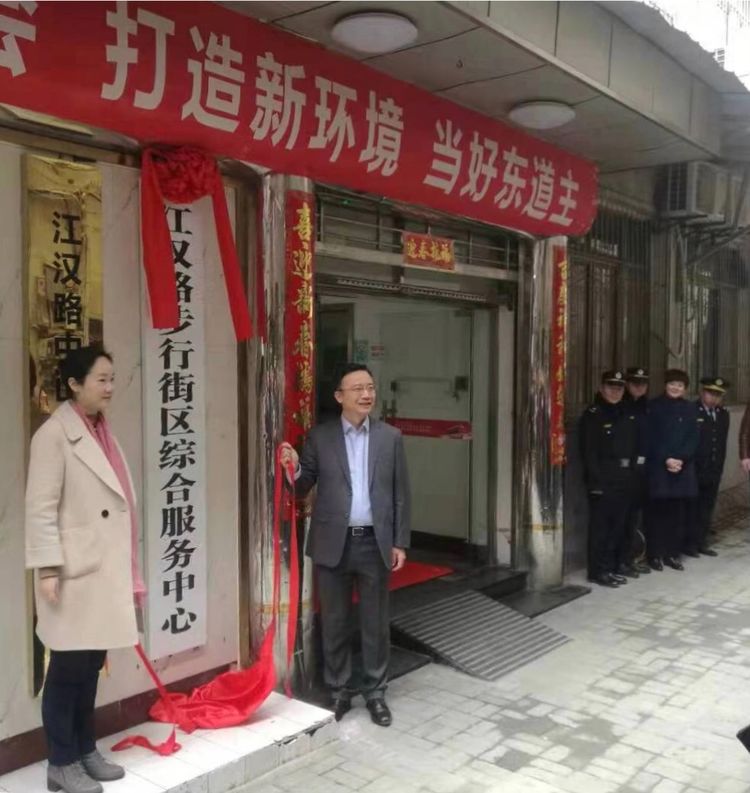 3月8日上午,江汉路步行街区综合服务中心正式挂牌,区政府副区长赫敏出席挂牌仪式,并为江汉路步行街区综合服务中心揭牌。