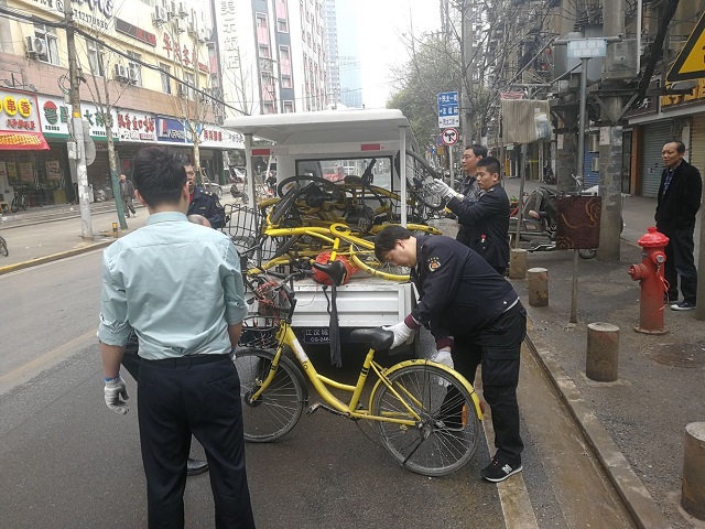 民意街以突击整治辖区主次干道违法出店、占道经营和乱堆乱放为主,社区内背街小巷固体生活垃圾为辅,于3月20-22日连续三天集中相关人员开展专项整治行动。此次行动突出体现了全动员、全时段、全辖区的特点,三天累计调动各方力量共70余人,出动各类车辆6台,不间断、扫街式推进,共清理集中码放小黄车等废弃共享单车260余辆,现场清理无主废弃自行车及电动车10余辆,整治出店、占道经营100余处,压缩大件固体生活垃圾及建渣约14吨。通过三天突击整治,及时有效缓解了我街路面占道经营和乱堆乱放的压力,为下一步持续常态化推进城管工作打下了坚实基础。