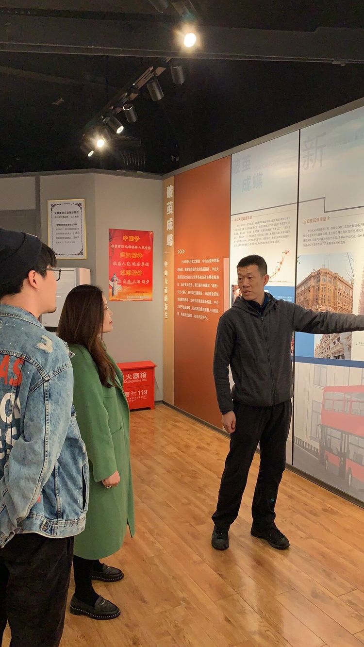 江汉路步行街区综合服务中心工作人员为师生们讲解了步行街上一栋栋优秀历史建筑的历史渊源,风格特色,也讲述了老建筑见证的武汉商贸发展历程。