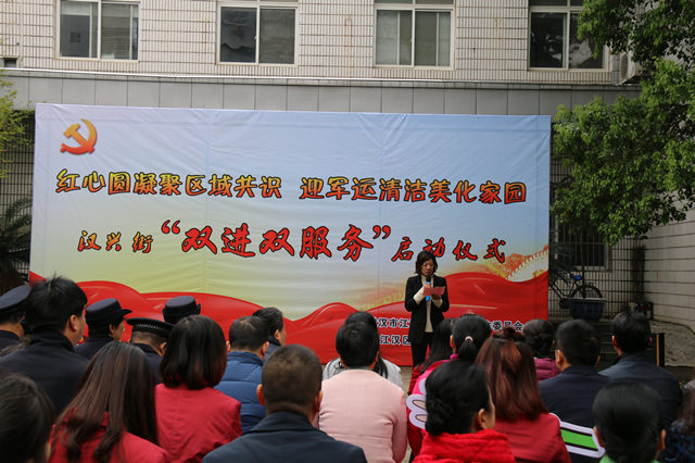 4月11日,江汉区汉兴街“双进双服务”启动仪式在民航里社区拉开帷幕,对口联系机关企事业单位党组织、辖区在职党员及居民群众等百余人到场参与活动。
