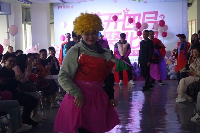 其中电影时装秀游戏环节,每组的男生、女生根据抽取的道具和对应的电影人物,一起为走秀的男生进行打扮,不一会儿“容嬷嬷”、“超人”、“玛丽莲梦露”、“蝙蝠侠”、“吸血鬼”等电影人物陆续粉墨登场,别样的时装秀笑翻全场。