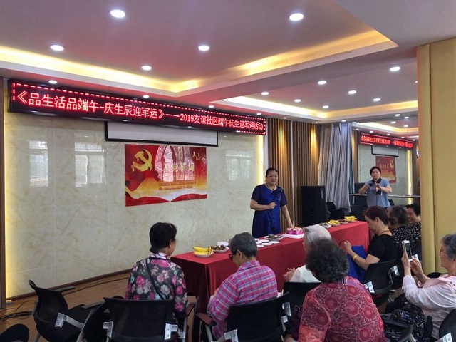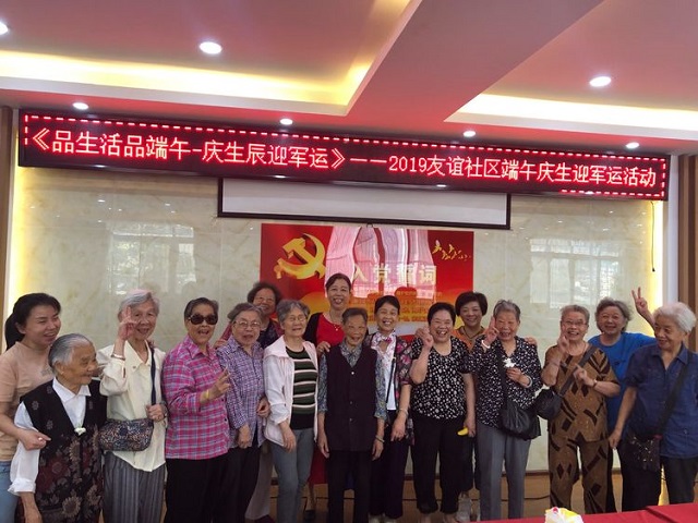 2019年5月30日,民意街友谊社区与至爱公司一同为辖区寿星老人庆祝生日,同时迎接即将到来的端午节。活动现场,社区为老人们准备了蛋糕、粽子、香蕉以及妃子笑等美食,并采取互动答题的形式让老人们积极参与到军运会宣传中,熟记军运会应知应会知识,现场气氛非常活跃。