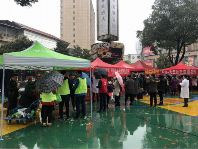 活动当天一直在下雨,江汉区民族街的雷锋志愿者们按照原定计划,在辖区街头现场“摆摊”,为辖区居民们提供免费义诊、健康咨询、电器维修、法律咨询、植物科普、配钥匙、理发、修鞋等多项志愿服务,内容丰富、形式多样的志愿服务深受辖区居民们的欢迎。