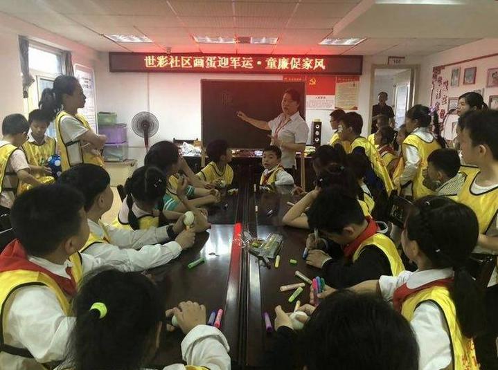 在社区四点半学校里,老师志愿者用趣味运动会的方式同孩子们一起庆六一、迎军运,社区书记还给社区四点半学校的孩子们讲廉、写廉、画莲,用童趣促廉政家风。
