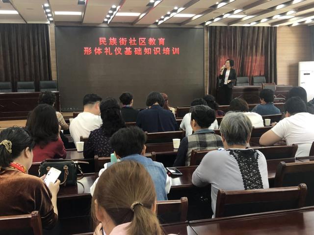 随着第七届世界军人运动会的临近,遵循行业服务标准、规范服务、文明用语、礼貌待人也成为了武汉人亮相全球的品牌名片。江汉区民族街办事处为进一步推进辖区志愿者服务质量和行为礼仪规范,街道公共服务办公室特邀武汉伟鼎职业培训学校的黎瑜娟老师讲解服务礼仪培训,为辖区60余位志愿者授课。