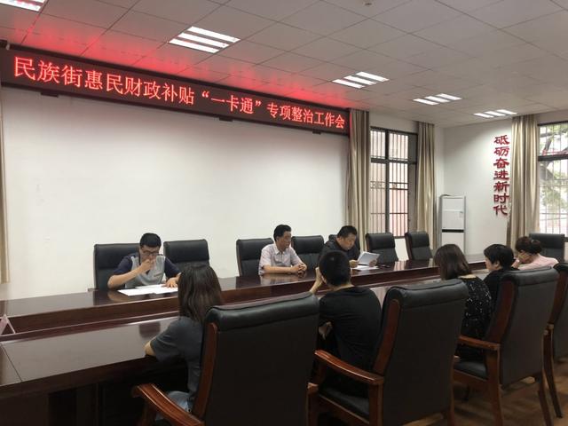 按照省、市、区关于开展惠民财政补贴“一卡通”专项整治的安排部署,江汉区民族街全面启动专项清理自查工作。2019年5月26日上午,民族街惠民财政补贴“一卡通”专项整治工作会在街道政务服务中心召开,自查工作迅速展开。